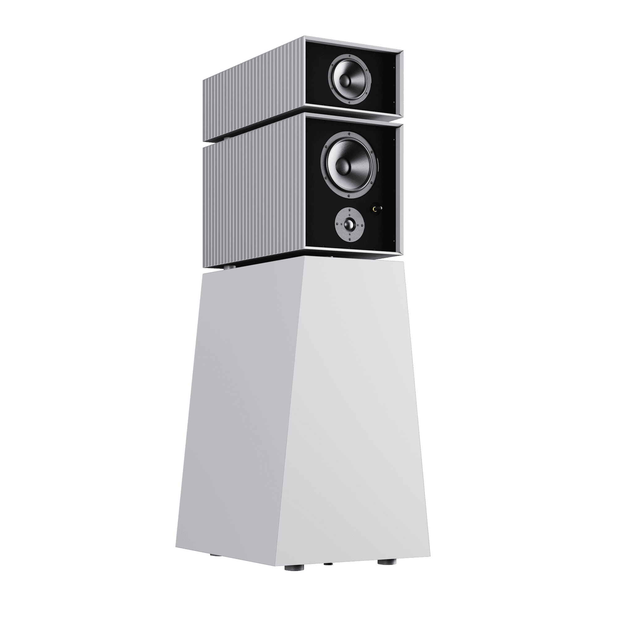 Silver gray enclosure and black grids